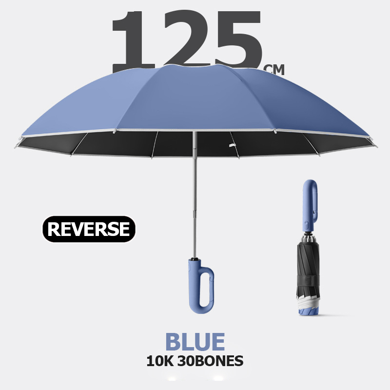 Duża wiatroszczelna mocna parasolka z odblaskowym paskiem Odwrotne automatyczne składanie Parasol UV na deszcz Słońce Karabińczyk Luksusowy uchwyt